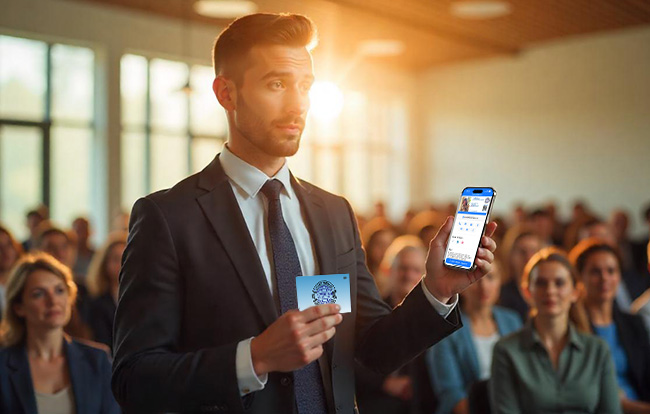 Share your L-Card via NFC, QR code, text message, email, or social media—no printing, no limits.